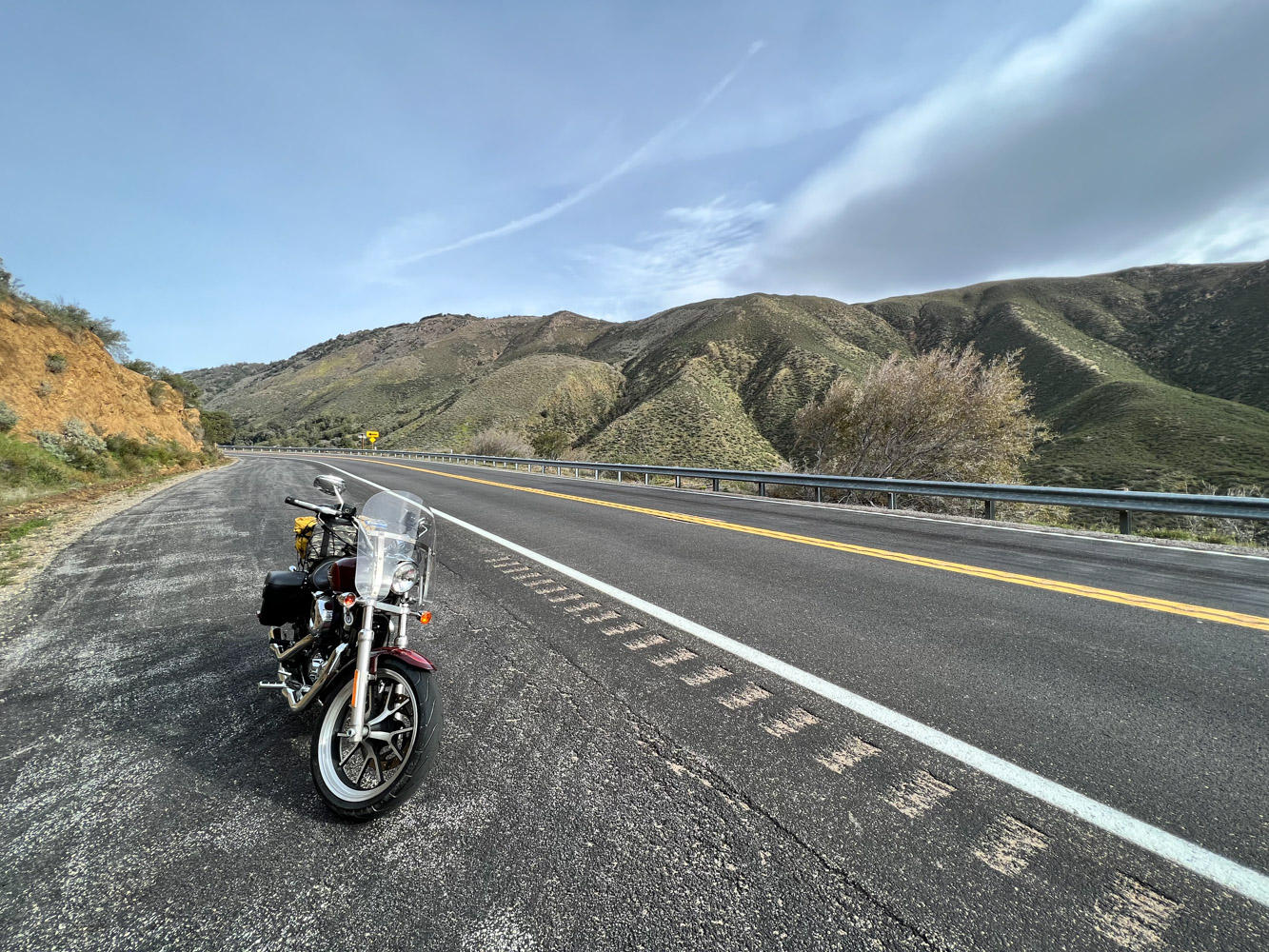 Je prends donc un vol direct Montréal-Los Angeles et j’arrive vers midi trente. Ça y est, je suis maintenant rendue sur la côte Ouest! YAHOO! Je prends possession de la moto, une Harley-Davidson Sportster 1200, la même moto que j’avais louée à Denver à l’été 2022. Par le passé, mon choix s’arrêtait généralement sur la Street Glide, mais aujourd’hui, je préfère voyager plus léger.