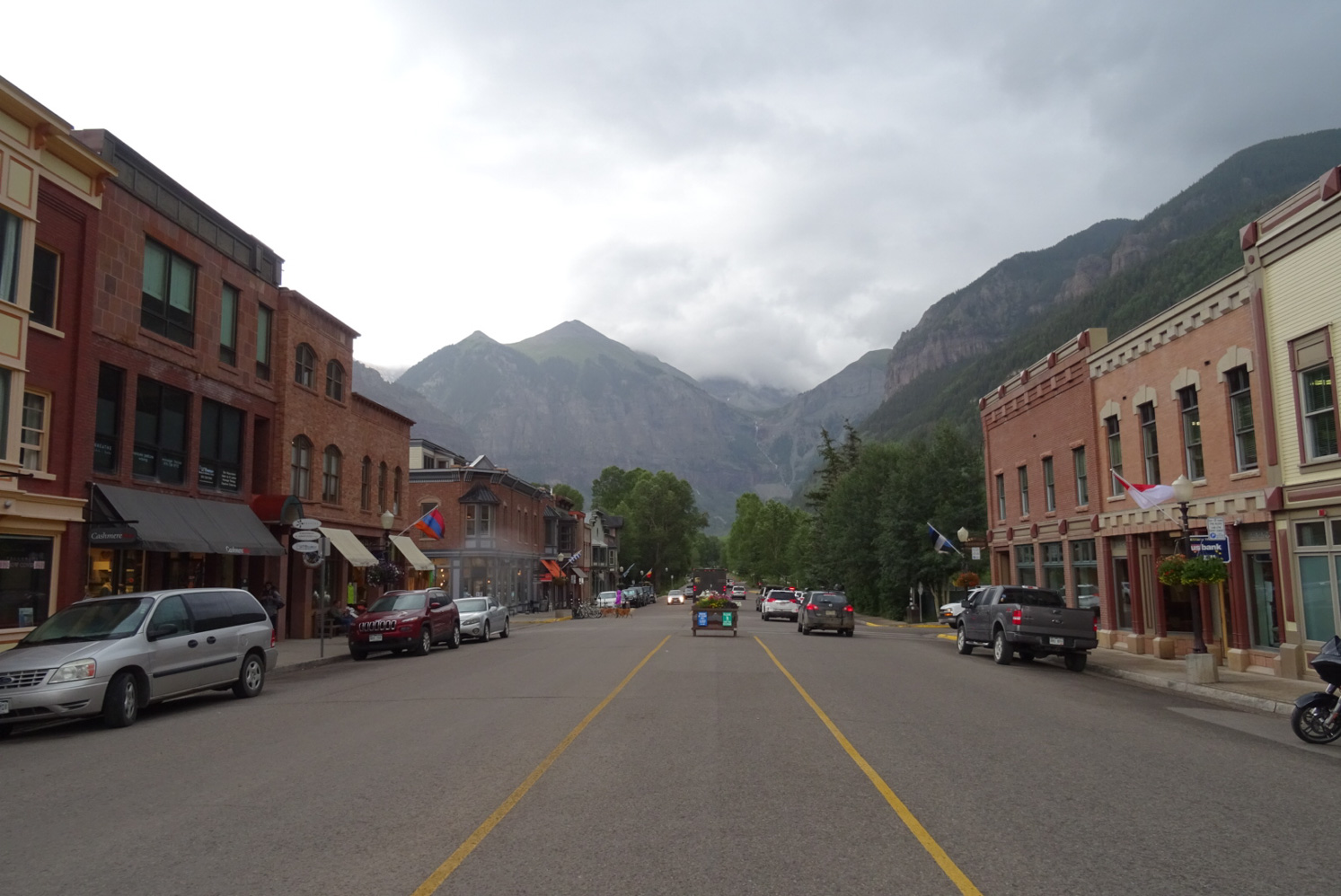 Je vous épargnerai donc les passages visités l’an dernier et dont vous pouvez lire mon appréciation dans l’édition de janvier 2017de Moto Journal. Quoi de neuf cette année? J’ai toujours voulu faire la 145 à l’ouest de la San Juan National Forest, cette route parallèle à la Million Dollar Highway (550), mais je passais toujours à côté. Dans une averse intense, nous avons donc découvert la charmante ville de Telluride nichée au creux des montagnes. La 145 est magnifique avec son relief rouge argile. Nous n’avons pu l’apprécier à sa juste valeur à cause de la température, mais j’y retournerai! Nous en profitons pour faire un arrêt à l’historique Enterprise Bar & Grill à Rico (sixième plus vieux bar du Colorado) pour un rafraîchissement.