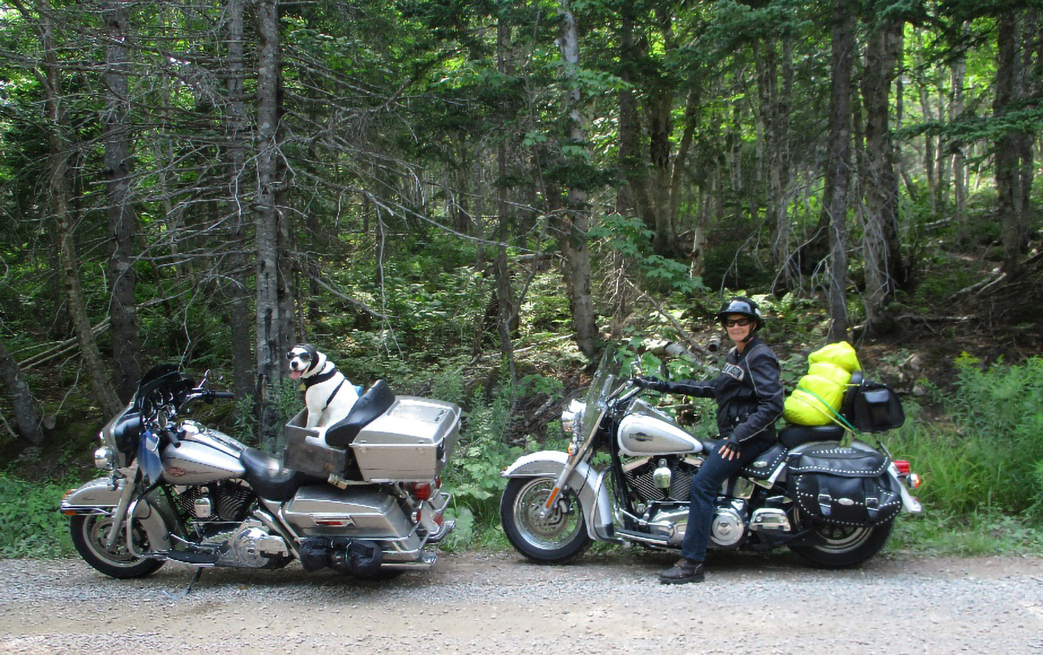 Rafraîchis par notre baignade, on est sortis du parc national pour prendre la Bay St. Lawrence Road afin de se rendre à Meat Cove, le point le plus au nord de l’île du Cap-Breton. Dans le petit restaurant du camping, le propriétaire a fait faire des écussons pour les motocyclistes. On a rencontré sa fille, qui nous a dit que son père a fait ça pour nous, les bikers, parce qu’on était tout le temps de bonne humeur, peu importe la météo! La partie que j’ai aimée le plus : la descente juste avant d’arriver au chemin de terre. La route serpentait et je me sentais comme si je descendais dans le cœur de la montagne!