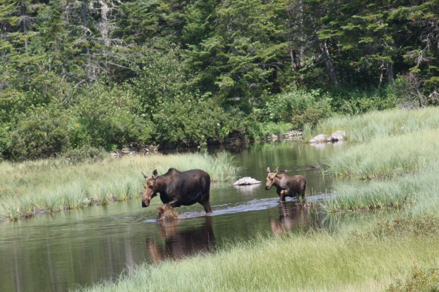 La meilleure raison de ne pas avoir suivi ses conseils était la belle femelle original et son bébé qu’on a eu la chance de voir. Au début, c’était juste la maman, mais on est restés si longtemps, enchantés de pouvoir observer cette bête majestueuse, qu’un moment donné on a vu arriver le petit. Les deux mangeaient un bon repas dans le ruisseau. On a pu les observer pendant plus qu’une heure! Un spectacle improvisé de la nature privé et gratuit!